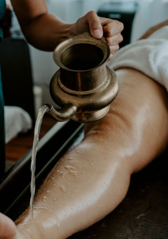 • Shirodhara: Therapy involving a continuous flow of oil on the forehead.
